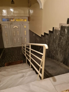 Η συγκεκριμένη πολυκατοικία είναι από τις λίγες στην πόλη μας που διαθέτουν ράμπα. Για τους περισσότερους ανθρώπους είναι απλά μία ράμπα, για τα άτομα με κινητικές δυσκολίες όμως είναι η λύση σε ένα από τα καθημερινά τους προβλήματα. Όπως φαίνεται και στην φωτογραφία είναι σωστά κατασκευασμένη, αφού η μετάβαση στα επίπεδα γίνεται ομαλά. Με αυτόν τον τρόπο, επιτρέπεται η είσοδος σε όλους και οι άνθρωποι με αμαξίδιο δεν αναγκάζονται να γίνονται βάρος στους άλλους για να εισέλθουν στον χώρο.