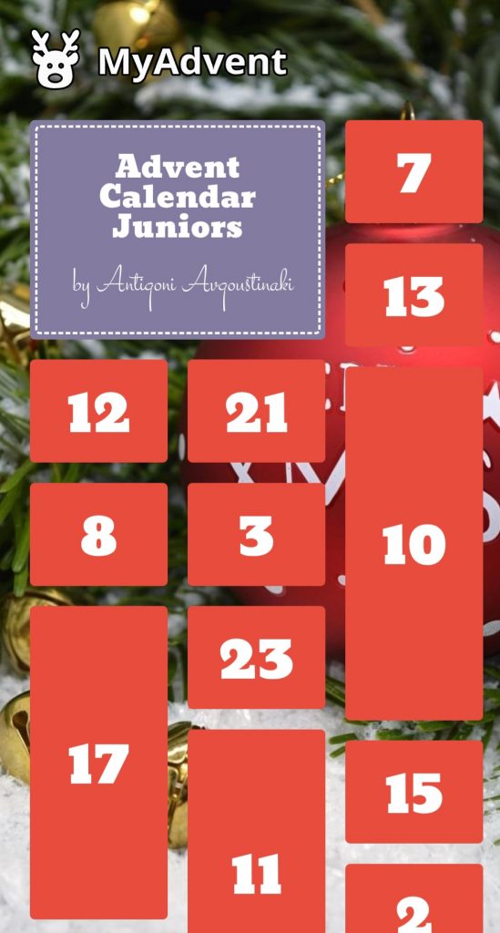 Christmas Advent Calendar Juniors ΑΥΓΟΥΣΤΙΝΑΚΗ ΑΝΤΙΓΟΝΗ Χωρίς κατηγορία 1 Δεκεμβρίου 20251 Δεκεμβρίου 20251st Class, 2nd Class, Christmas, Special Days 0 Comment https://app.myadvent.net/calendar?id=u229rggyc9aihhe2qaw9xevcmjyw8h6x