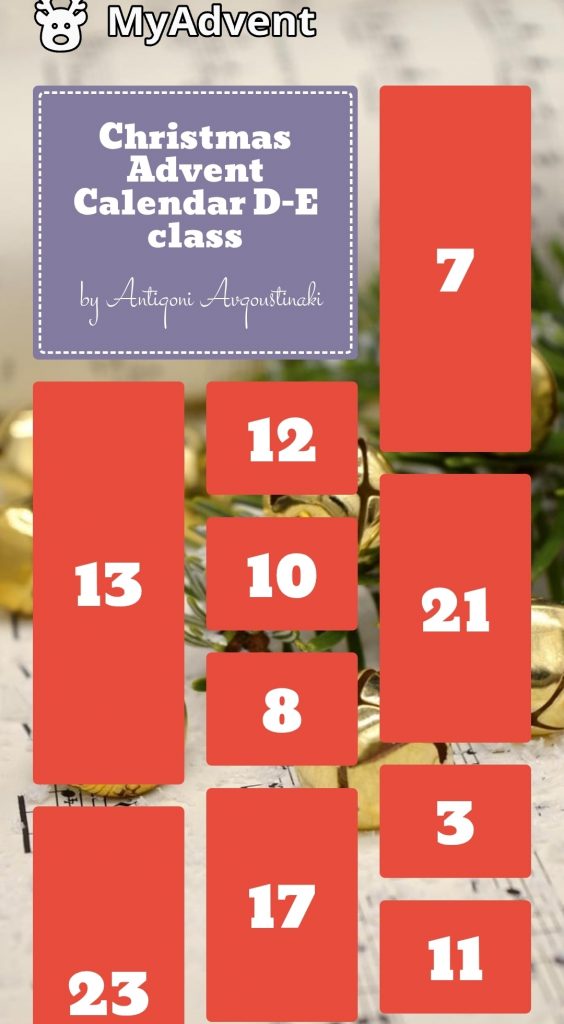 Advent Calendar D-E ΑΥΓΟΥΣΤΙΝΑΚΗ ΑΝΤΙΓΟΝΗ Χωρίς κατηγορία 2 Δεκεμβρίου 20254th Class, 5th, 6th, Christmas, Special Days 0 Comment