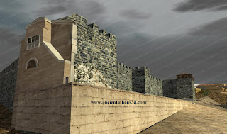 ἐνῶ οἱ γωνιακοὶ κίονες κλίνουν διαγωνίως κατὰ 0,10 m.
