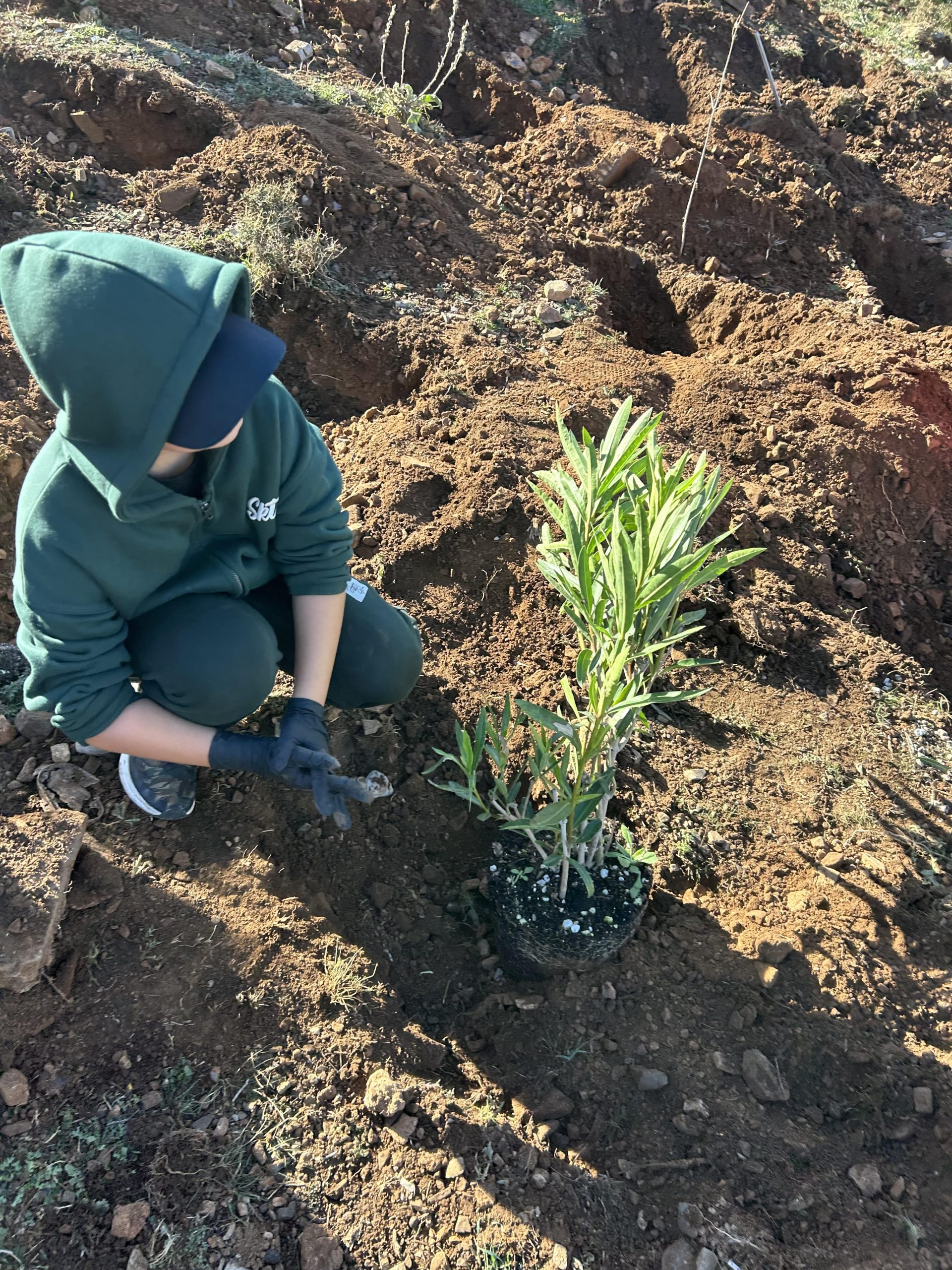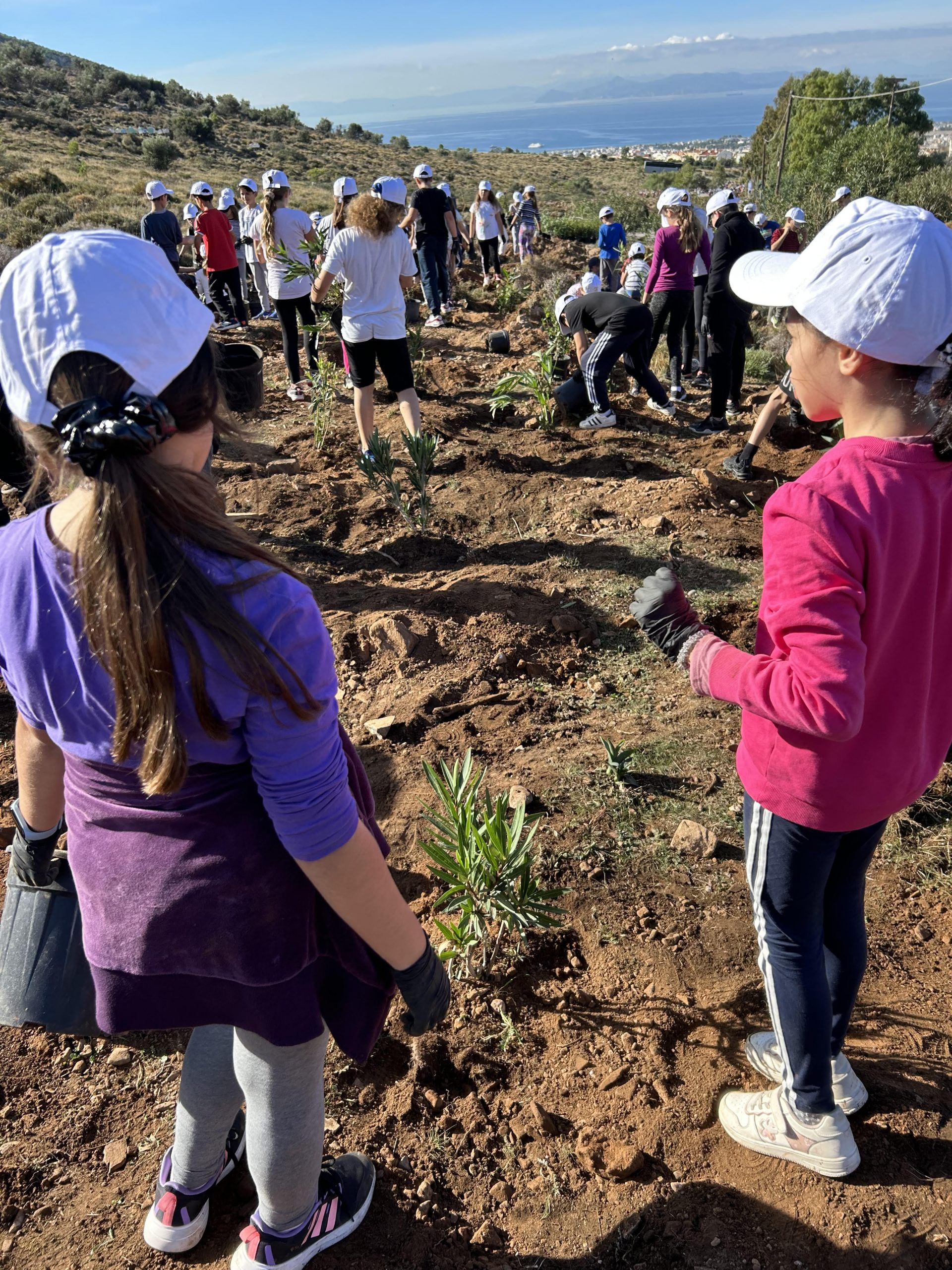 Οι μαθητές μεταφέρθηκαν στους πρόποδες του βουνού και αφού εξοπλίστηκαν με εργαλεία, γάντια και καπέλα, ανέλαβαν αμέσως δράση. Με τη συνδρομή και καθοδήγηση των εργαζομένων του δήμου, έσκαψαν, συνεργάστηκαν, έμαθαν και διασκέδασαν. Η ανταπόκρισή τους στο έργο ήταν ενθουσιώδης, και η επαφή με τη φύση γέμισε τα πρόσωπά τους με χαμόγελα!