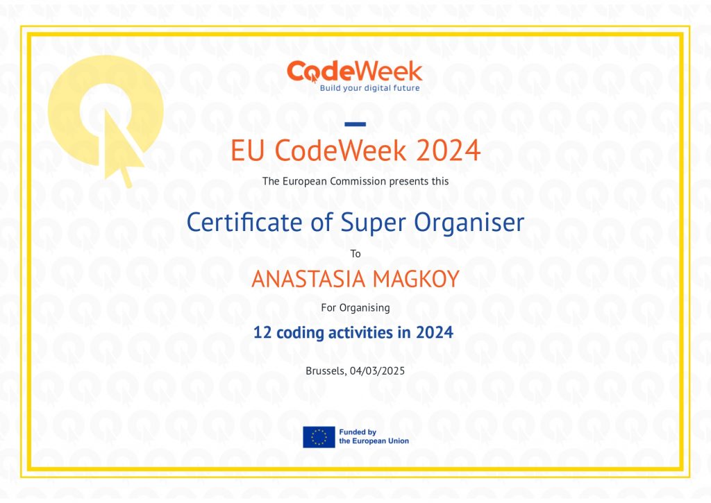 A big thank you to Mentor Anna Magkiosi, to the CodeWeek organizing team!