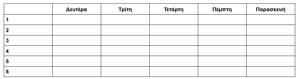 Συμπληρώνω τις μέρες, ώρες και τα μαθήματα