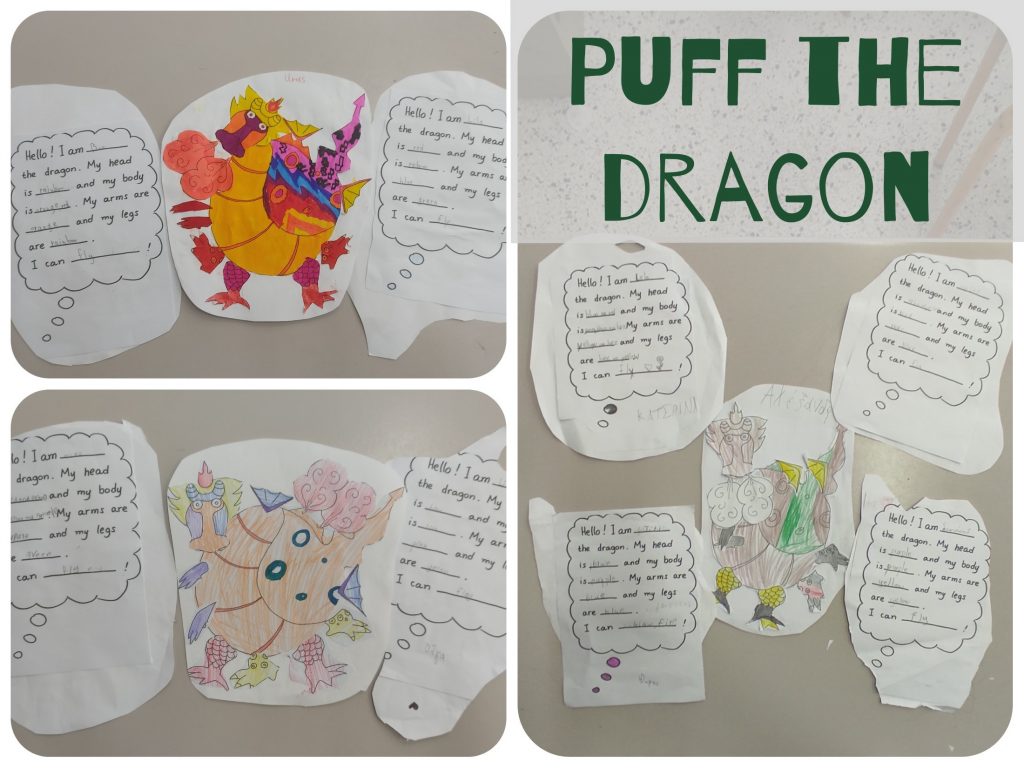 Φτιάξαμε τους δικούς μας δράκους και τους παρουσιάσαμε χρησιμοποιώντας μέρη του σώματος και χρώματα.