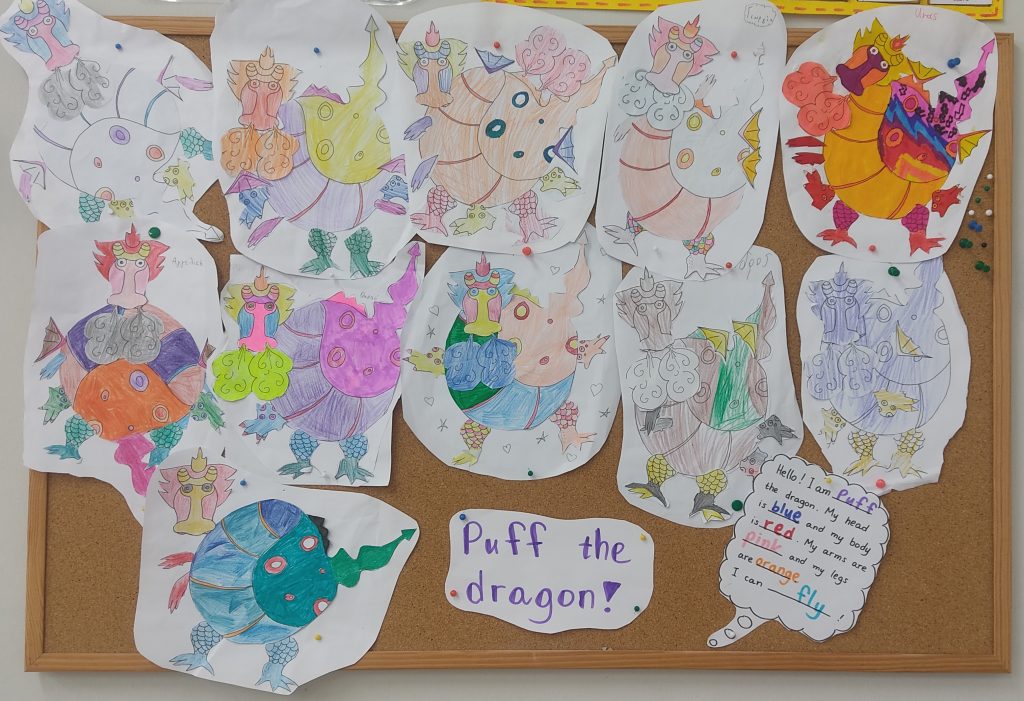 Φτιάξαμε τους δικούς μας δράκους και τους παρουσιάσαμε χρησιμοποιώντας μέρη του σώματος και χρώματα.