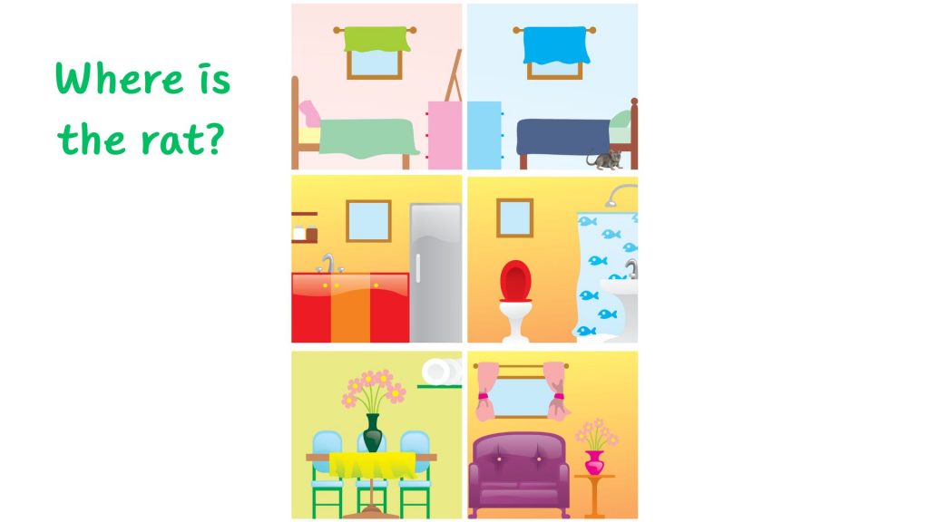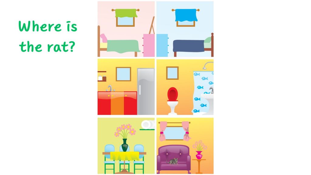 Ωχ! Ενας αρουραίος κρύφτηκε στο σπίτι μας! Μπορείς να τον βρεις; Σε ποιο δωμάτιο κρύβεται;