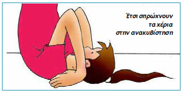 2.Το σώμα συσπειρώνεται με τις παλάμες να είναι κοντά στα αυτιά και στραμμένες προς τα επάνω.