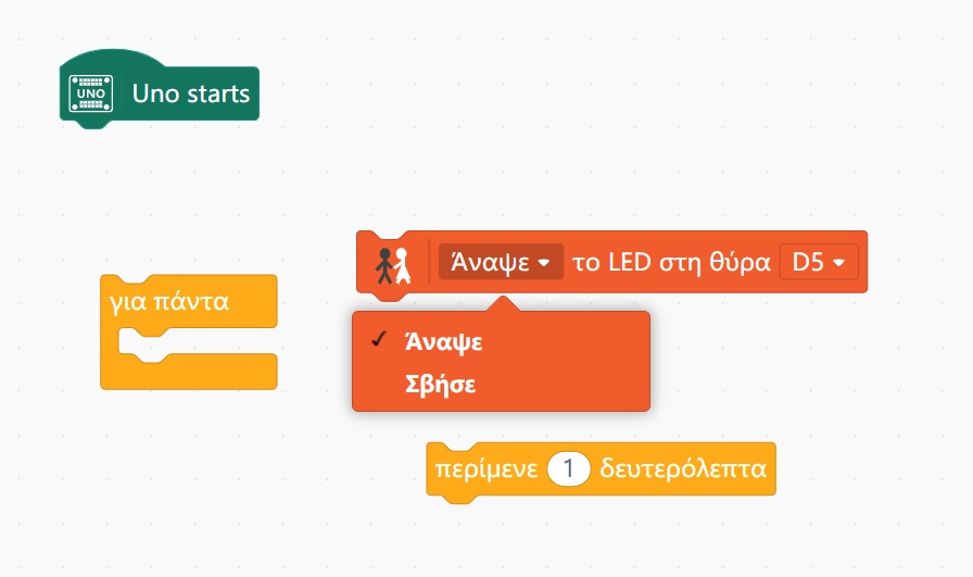 αι στη διπλανή εικόνα ώστε να ανάβει το κόκκινο led για 1 δευτερόλεπτο και να κλείσει πάλι για 1 δευτερόλεπτο. Και αυτό να γίνεται συνέχεια, σε μια επανάληψη "για πάντα".