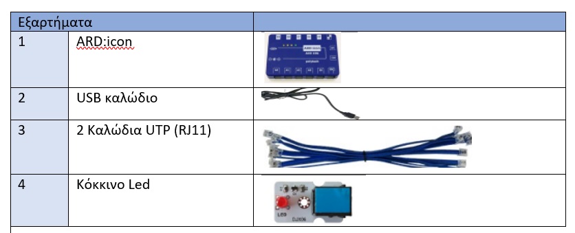 1. Συνδέουμε το Led στη θύρα D8 (Ψηφιακή) μέσω καλωδίου μπλε (UTP-RJ11).