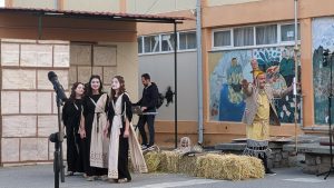 Η παράστασή μας παρουσιάστηκε στον προαύλιο χώρο του σχολείου μας, κατά το τριήμερο 16, 17 και 18 Μαΐου 2025. Η πρώτη παρουσίαση ήταν προορισμένη για το μαθητικό κοινό και οι άλλες δύο για το ευρύ κοινό.