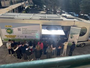 Στο σχολείο μας τοποθετήθηκε το καινοτόμο, ειδικά κατασκευασμένο όχημα στο οποίο πραγματοποιήθηκε το Εκπαιδευτικό Πρόγραμμα για την Ανακύκλωση και τη βιώσιμη διαχείριση αποβλήτων. Τα παιδιά αφού ενημερώθηκαν με προβολή βίντεο, συμμετείχαν διαδραστικά στην ταινία διαλογής που έχει το όχημα και ξεχώρισαν μόνα τους τα ανακυκλούμενα από τα μη, κατανοώντας την διαδικασία με τον καλύτερο δυνατό τρόπο.