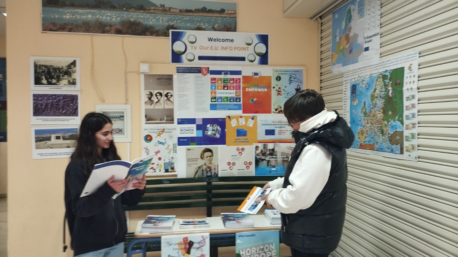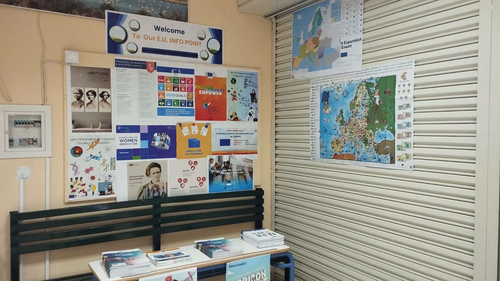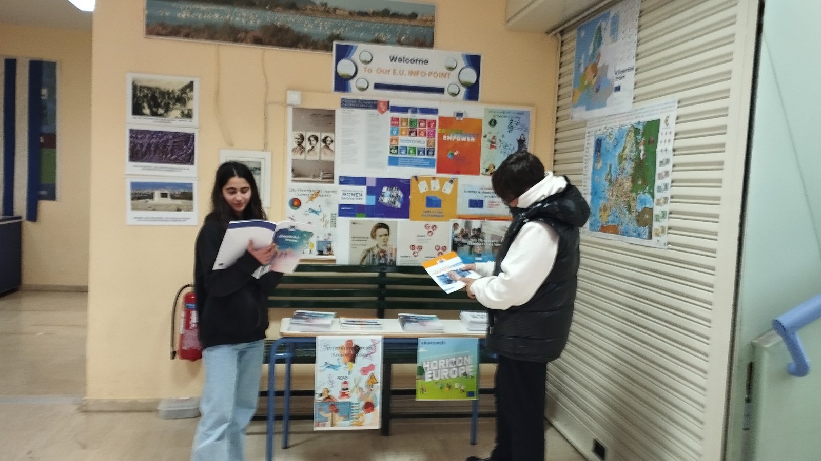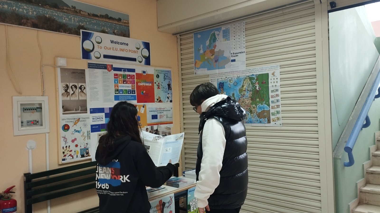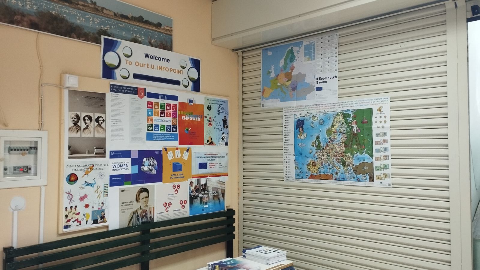 Το φυσικό Info Point είναι δικό μας δημιούργημα και είναι για όλους! Σας καλούμε να το επισκέπτεστε, να το αξιοποιείτε και να συμμετέχετε στις δράσεις μας. Μαζί μπορούμε να διαμορφώσουμε ένα σχολείο ενεργό, ενημερωμένο και με ευρωπαϊκή ταυτότητα!