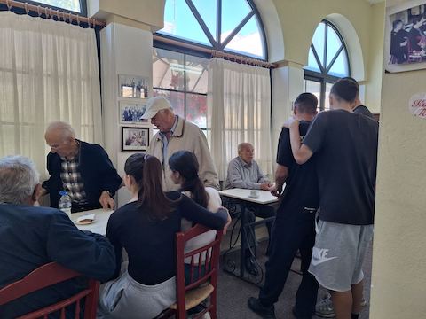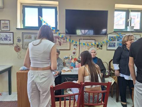 Στο πλαίσιο της επίσκεψής τους, οι μαθητές/τριες μοίρασαν ένα σύντομο ερωτηματολόγιο με σκοπό να καταγράψουν τις απόψεις και τα συναισθήματα των ηλικιωμένων γύρω από τη συμμετοχή τους στις δραστηριότητες του ΚΑΠΗ.