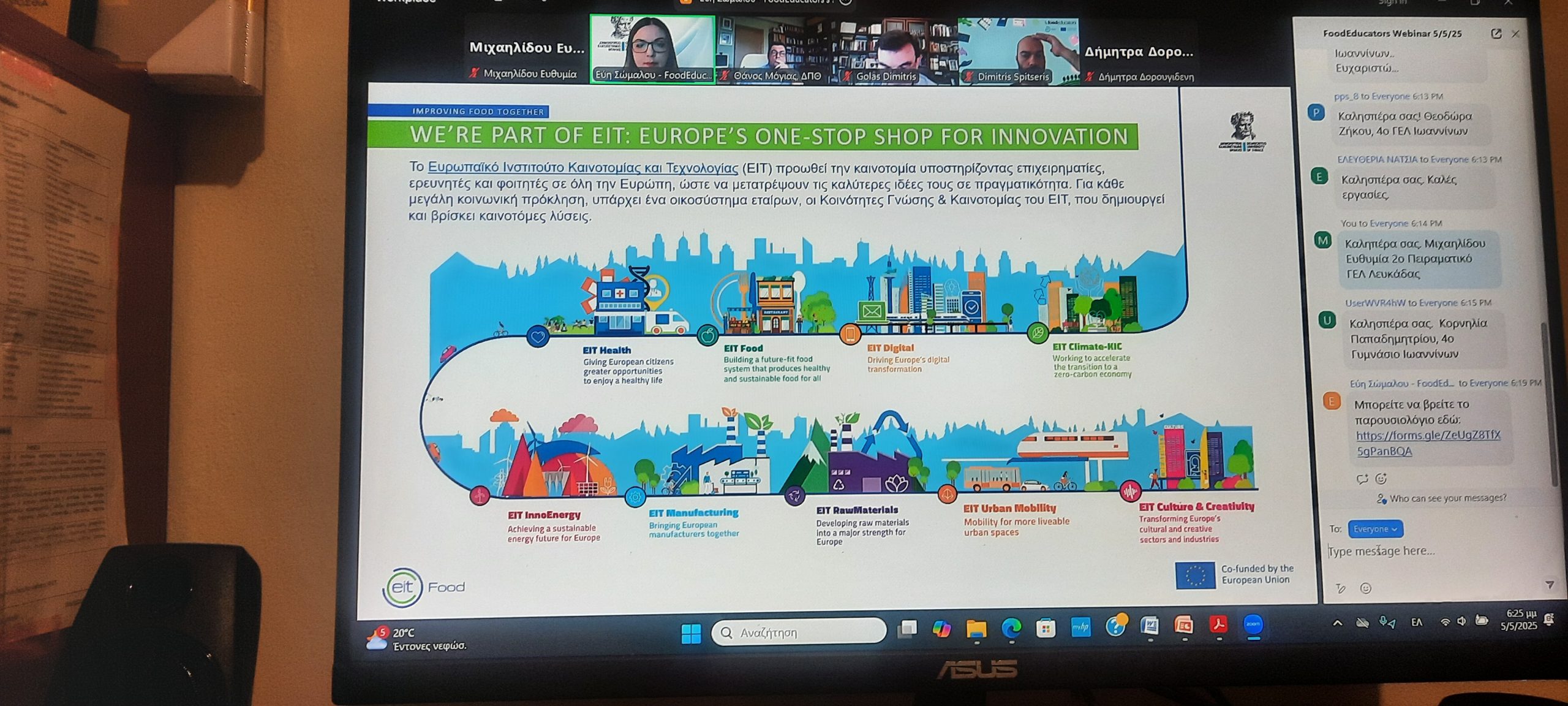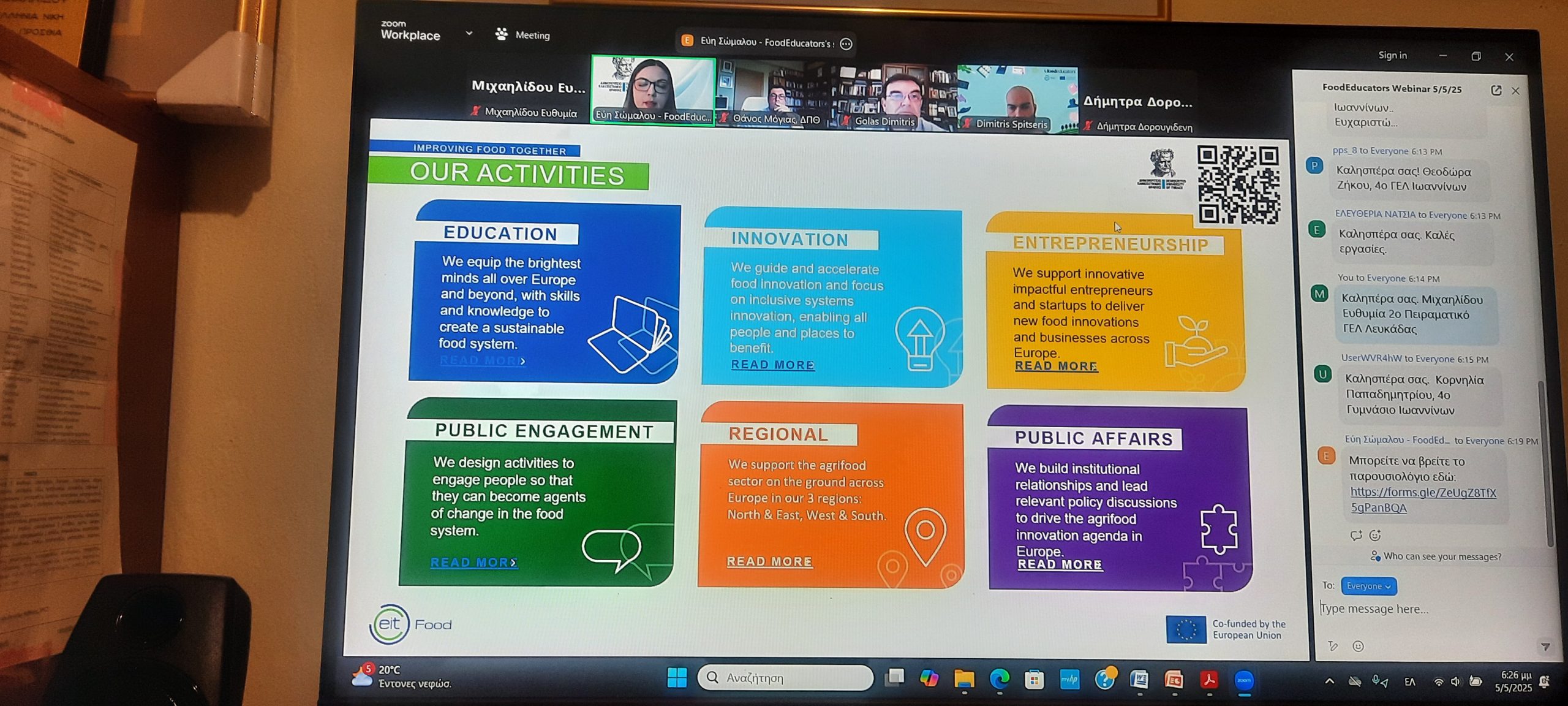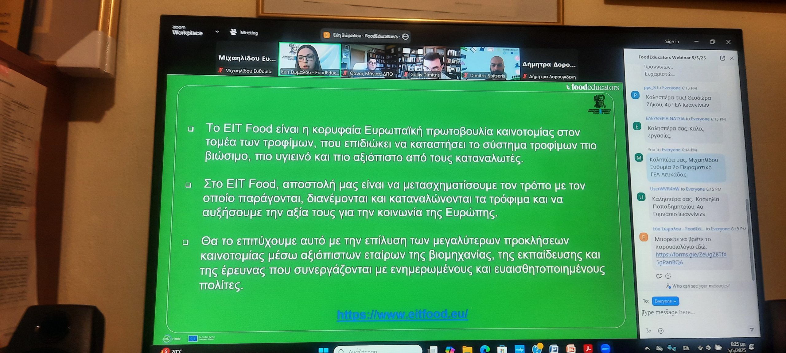 Στο πλαίσιο της συνεχούς επιμόρφωσης και ενημέρωσης των Senior Ambassadors του προγράμματος EPAS (Σχολεία-Πρέσβεις του Ευρωπαϊκού Κοινοβουλίου), η Μιχαηλίδου Ευθυμία (ΠΕ11) Φυσικής Αγωγής εκπαιδευτικός του σχολείου μας συμμετείχε στο διαδικτυακό σεμινάριο που διοργανώθηκε τη Δευτέρα 5 Μαΐου 2025 από το Δημοκρίτειο Πανεπιστήμιο Θράκης (ως Εθνικός Κόμβος του EIT Food και του FoodEducators) σε συνεργασία με το Europe Direct Ηπείρου.