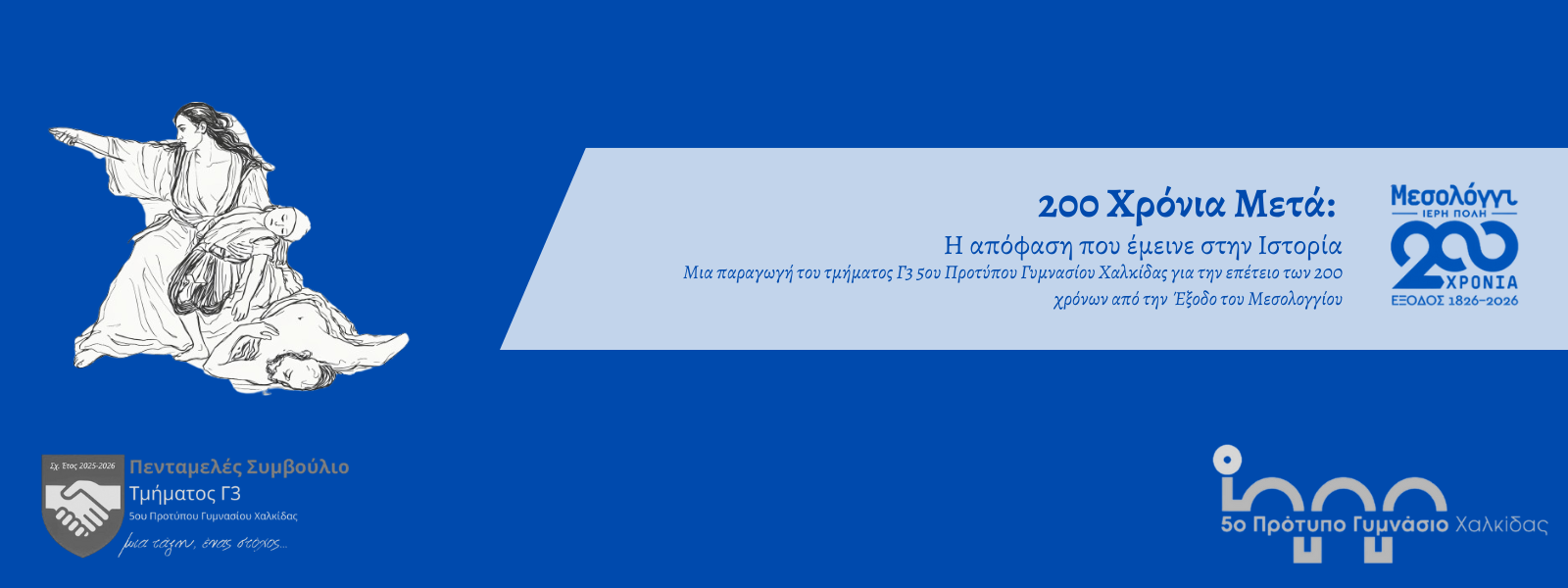Με αφορμή την επέτειο της Εξόδου του Μεσολογγίου, το τμήμα Γ3 του 5ου Πρότυπου Γυμνασίου Χαλκίδας δημιούργησε ένα ολοκληρωμένο ψηφιακό project με τίτλο «200 Χρόνια Μετά: Η απόφαση που έμεινε…