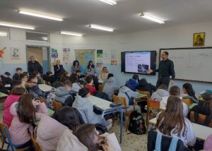 Ο κ. Τρίγκας παρουσίασε στους μαθητές της Α’ Γυμνασίου βασικές γνώσεις και τεχνικές Πρώτων Βοηθειών, όπως η σωστή αντιμετώπιση λιποθυμίας και πνιγμονής, καθώς και τα πρώτα βήματα καρδιοπνευμονικής αναζωογόνησης (ΚΑΡΠΑ). Η παρουσίαση ήταν βιωματική και διαδραστική, δίνοντας στα παιδιά την ευκαιρία να θέσουν ερωτήσεις και να εξασκηθούν σε βασικές πρακτικές δεξιότητες.