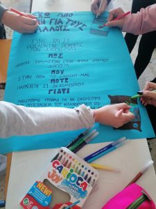 Έτσι, μας δόθηκε ώθηση να δανειστούμε κάποιο βιβλίο, μια και στο μάθημα λογοτεχνίας ξεκινήσαμε μια προσπάθεια φιλαναγνωσίας κυρίως στην Α’ γυμνασίου με εκκίνηση τις διακοπές των Χριστουγέννων.