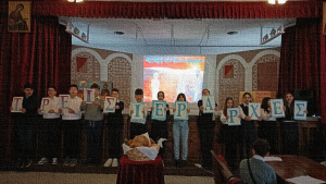 Στη συνέχεια ακολούθησε μια πολύ όμορφη γιορτή με ακροστιχίδα, ένα σύντομο δρώμενο, ένα τραγούδι αφιερωμένο στους Ιεράρχες.