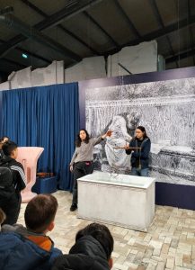 Την Παρασκευή 5 Δεκεμβρίου η Α Γυμνασίου του σχολείου μας στα πλαίσια του μαθήματος της Αρχαίας Ελληνικής Ιστορίας, επισκέφτηκε την έκθεση «Αρχαία Ελλάδα» στο περίπτερο 5 της Δ.Ε.Θ. Πρόκειται για ένα εντυπωσιακό, διαδραστικό θεματικό πάρκο αφιερωμένο στον αρχαίο ελληνικό πολιτισμό. 65 μαθητές της Α γυμνασίου , μαζί με 3 συνοδούς καθηγητές, είχαν την ευκαιρία να θαυμάσουν από κοντά αντίγραφα σημαντικών αγαλμάτων, επιβλητικά μνημεία όπως η «πύλη των λεόντων» και «ο δούρειος ίππος», αλλά και να γνωρίσουν εφευρέσεις ξακουστών αρχαίων Ελλήνων. Η διαδραστική ξενάγηση κράτησε αμείωτο το ενδιαφέρον των παιδιών που περιηγήθηκαν στον χώρο για μιάμιση ώρα.