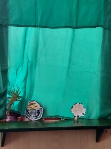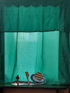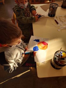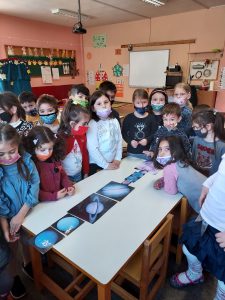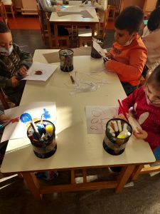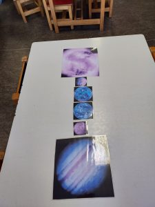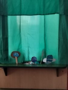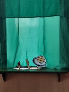 Τα παιδιά με αφορμή την κατασκευή πλανητών σε καλαμάκι από ένα νήπιο στο σπίτι του έφτιαξαν τους δικούς τους πλανήτες πάνω σε γλωσσοπίεστρο και έπαιξαν κουκλοθέατρο το οποίο έφτιαξαν μόνοι τους.