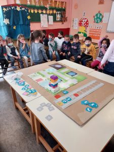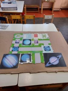 Ρομποτική με τους πλανήτες . Το ρομπότ μας καλείται να συγκεντρώσει τους 8 πλανήτες και να δημιουργήσει το ηλιακό μας σύστημα.Τα νήπια καλούνται σε ομάδες να το προγραμματίσουν δημιουργώντας μια σειρά εντολών.