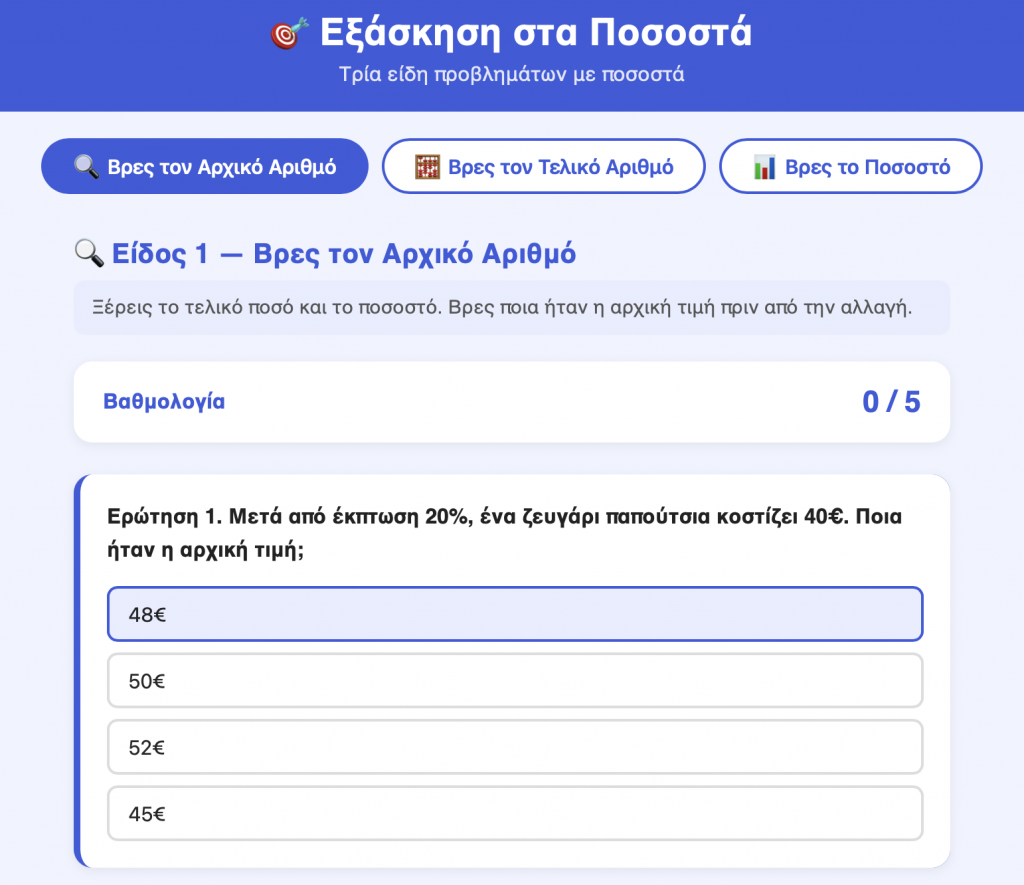 - Επανάληψη στα προβλήματα με ποσοστά: provlimata-me-pososta.netlify.app