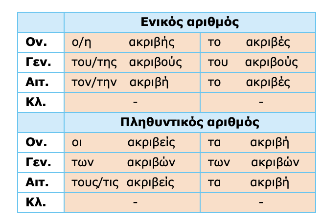 | Ονομαστική | τα οξέα | τα δόρατα |