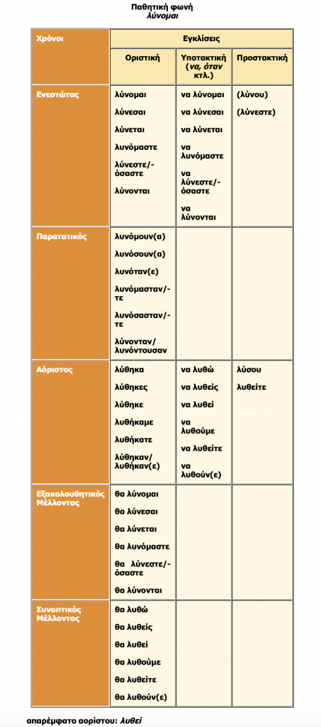 Η Παθητική φωνή (πάλι από τη Γραμματική Α' Γυμνασίου):