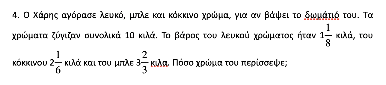 Επόμενη λεξη-κλειδί: πόσο χρώμα περίσσεψε. Πράξη: αφαίρεση.