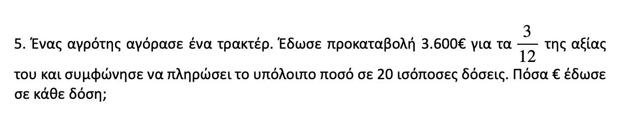 2. Με διαίρεση, επειδή ξέρω τα 3/12 και ψάχνω τα 12/12 (όλο το ποσό)