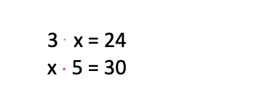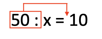 Στη διαίρεση ισχύει ό,τι και στην αφαίρεση: έχει σημασία η θέση του x. Αν είναι μπροστά, κάνουμε την αντίστροφη πράξη (ο διαιρετέος). Αν είναι πίσω (ο διαιρέτης) μεταφέρουμε τον διαιρετέο μαζί με το :
