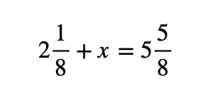 Είναι μία κανονική εξίσωση με πρόσθεση. Απλώς στο πρώτο βήμα θα πρέπει να μετατρέψουμε τους μεικτούς αριθμούς σε κλάσματα. Στη συνέχεια ακολουθούμε τα βήματα με τα οποία λύνουμε τις εξισώσεις με πρόσθεση.