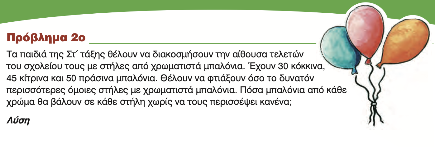 - μοιράσουμε τα μπαλόνια (άρα ψάχνουμε διαιρέτες)