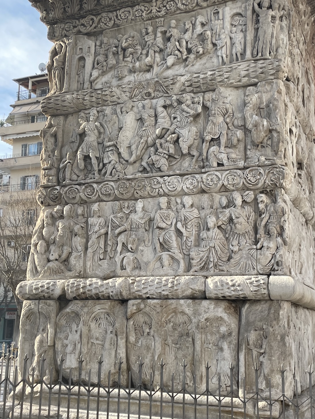 Όπως βλέπετε μας έχει μείνει ένα μεγάλο κομμάτι από το ανάκτορο του Γαλέριου, το οποίο μάλιστα αν έρθετε σίγουρα θα το δείτε γιατί βρίσκεται στο κέντρο της πόλης. Όμως, και πάλι δεν είναι αυτό το σημαντικότερο μνημείο της εποχής εκείνης. Τα δύο σημαντικότερα είναι αυτά που θα δείτε παρακάτω: