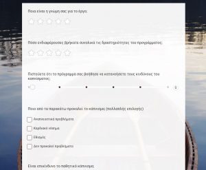 Στο πλαίσιο του προγράμματος, το ερωτηματολόγιο σχεδιάστηκε ώστε να αποτυπώνει αρχικά τη συνολική άποψη των μαθητών σχετικά με τη συμμετοχή τους και την εμπειρία που απέκτησαν. Στη συνέχεια, οι ερωτήσεις εστίασαν στις γνώσεις που απέκτησαν, εξετάζοντας τι έμαθαν μέσα από τις δραστηριότητες και κατά πόσο κατανόησαν βασικές έννοιες που σχετίζονται με τη θεματική του έργου.