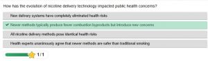 Students participated in educational quizzes created within the Technology course, on the topics: “How has the development of nicotine delivery technology affected public health concerns?”, “Anti-smoking robot” and “The little hand that greets”. These activities constituted a modern and interactive form of learning, combining knowledge with collaboration and reflection.