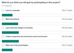 Οι μαθητές συμμετείχαν σε δημοσκόπηση με στόχο να καταγράψουμε τις προσδοκίες και τις ιδέες τους για το έργο, ώστε να το διαμορφώσουμε με τον καλύτερο δυνατό τρόπο και να ανταποκρίνεται ουσιαστικά στις ανάγκες και τα ενδιαφέροντά τους.