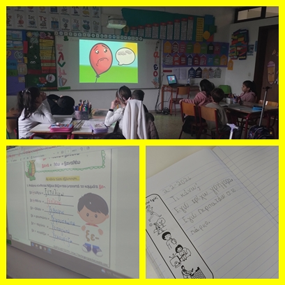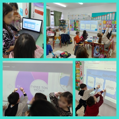 Παίξαμε τα κουίζ μας με το είμαι-είσαι-είναι και στα διαλείμματα που μέναμε μέσα λόγω βροχής παίξαμε με τον τροχό των γραμμάτων! Γυρνούσαν με το ποντίκι και στο γράμμα που σταματούσε άκουγες... ένα σωρό λέξεις ΤΑΥΤΟΧΡΟΝΑ!!! Ανεπανάληπτες "χαλαρές" στιγμές διαλειμμάτων μέσα στην τάξη λόγω βροχής!