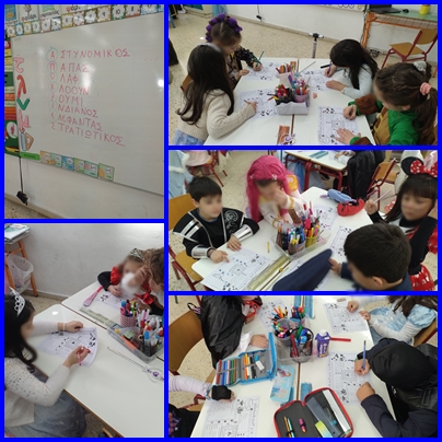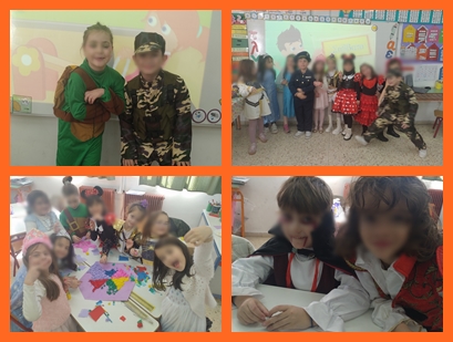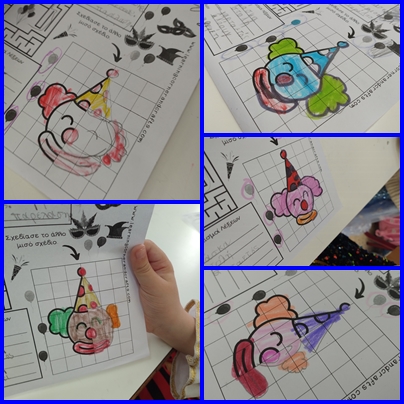 Την Παρασκευή ήταν η ημέρα του αποκριάτικού πάρτι! Τις πρώτες δυο ώρες μιλήσαμε για τα έθιμα της αποκριάς, καταγράψαμε κάποια και σκεφτήκαμε στολές που αρχίζουν από τα γράμματα της ΑΠΟΚΡΙΑΣ, σχηματίζοντας την ακροστιχίδα της. Δημιουργήσαμε συμμετρικούς κλόουν και λύσαμε αναγραμματισμούς αποκριάτικων λέξεων ομαδικά!