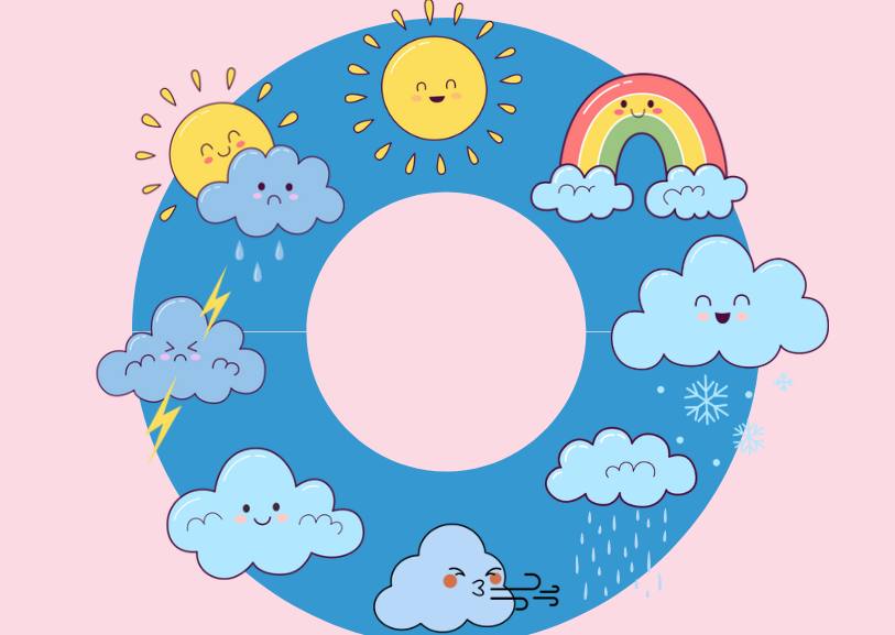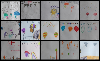 Αυτήν την εβδομάδα συνεχίζουμε το θέμα των καιρικών συνθηκών και το εμπλέκουμε περισσότερο με τα συναισθήματα και την ενσυναίσθηση! Σε πρώτη φάση τη Δευτέρα θυμηθήκαμε τις καιρικές συνθήκες και τις αποδώσαμε δραματοποιώντας τες με το σώμα μας. Ήταν και η μέρα που ξεκινήσαμε και τον πίνακα καταγραφής του καιρού της εβδομάδας.