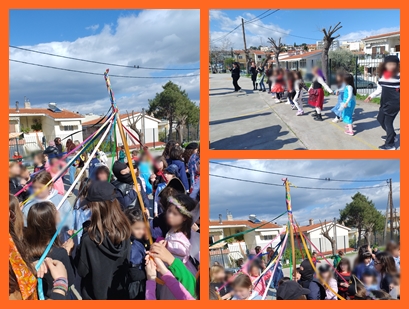 Στο τέλος της ημέρας μας, βγήκαμε για ένα ενιαίο πάρτι στην αυλή του σχολείου! Οι τάξεις ενώθηκαν με παραδοσιακούς χορούς και με το παραδοσιακό γαϊτανάκι!