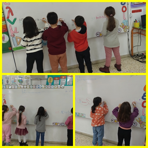 Στα Μαθηματικά αυτής της εβδομάδας, επιστρέψαμε στους αριθμούς ως το 50 και αρχίσαμε να ασχολούμαστε πιο πολύ με τις Δεκάδες και τις Μονάδες. Χτίσαμε αριθμούς με τουβλάκια, μάθαμε την αξία θέσης των ψηφίων και σηκώθηκαν όλα τα παιδιά ανά ομάδες στον πίνακα για εμπεδωτική άσκηση!
