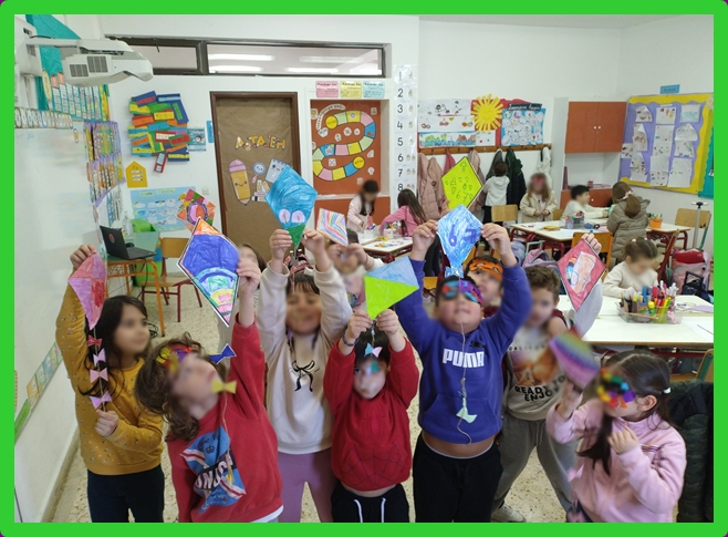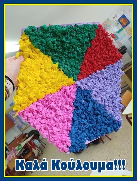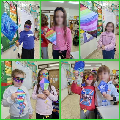 Τι άλλο κάναμε...; Φωτογραφηθήκαμε με τις στολές μας ομαδοποιοώντας ανα χρώματα! Επίσης, είχαμε και μια γωνιά για ομαδική κατασκευή χαρταετού! Τα κορίτσια της τάξης πραγματικά έδωσαν τον καλύτερό τους εαυτό για να τον φτιάξουν! Τα αγόρια χόρευαν και κυκλοφορούσαν παίζοντας διάφορους ρόλους με τις στολές τους! Αναμφίβολα αναδείχθηκαν οι δραματικές τους ικανότητες!!! Μια από τις πιο όμορφες στιγμές ήταν όταν μας επισκέφθηκε το Α1 και μας ξεσήκωσε με την κιθάρα του κ. Γιώργου!