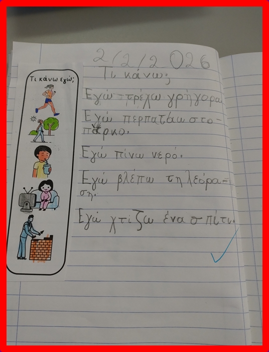 Αρχικά, καλωσορίσαμε το 2026 χρωματίζοντάς το! Μιλήσαμε για τη νέα χρονιά και για το πώς οι άνθρωποι μετράνε το χρόνο! Για την ακρίβεια ήμασταν λαλίστατοι, συζητώντας συνεχώς!Είπαμε πώς περάσαμε τις γιορτές και τι μας έφερε ο Αϊ Βασίλης! Είναι ωραίο να επιστρέφουμε και να μοιραζόμαστε όσα κάναμε τις μέρες που ήμασταν χώρια! Νομίζω σε όλους έλειψε η τάξη μας!
