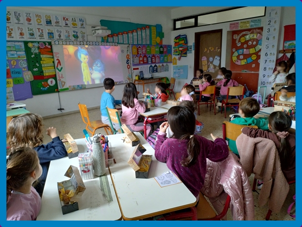 Την Τσικνοπέμπτη μας επισκέφτηκε η Γ τάξη και μας έφερε σε διάθεση καρναβαλιού! Μιλήσαμε λίγο για το έθιμο της Τσικνοπέμπτης και περιμέναμε με ανυπομονησία το σουβλάκι του Συλλόγου Γονέων και κηδεμόνων! Δυστυχώς ο καιρός δεν μας βοήθησε για να το γιορτάσουμε έξω...οπότε το συνοδέψαμε με μια ταινία σχετική με...συναισθήματα!