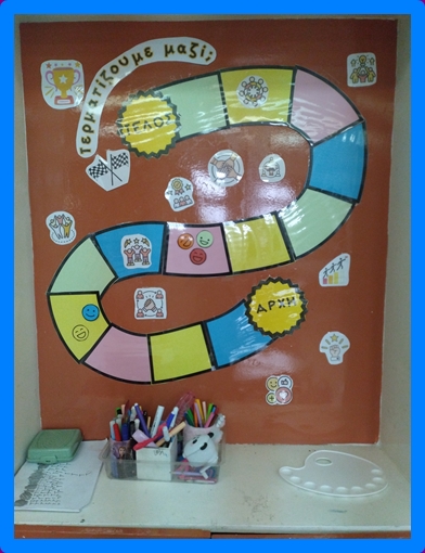 Κάθε ομάδα που κατάφερνε τον στόχο του παιχνιδιού προχωρούσε δυο βήματα στο επιτραπέζιο της τάξης! Ένα για την προσπάθεια και ένα για την ησυχία και την ομαδικότητα με την οποία δούλευε! Στο τέλος, φυσικά, κάθε ομάδα πήρε και το βραβειάκι της! Όχι μόνο για τους 6 σταθμούς, αλλά για όλη την πορεία και την προσπάθεια που κάθε παιδί μας κατέβαλε μέχρι σήμερα! Προσπάθησαν, προσπαθούν και τα καταφερνουν περίφημα! Και τους αξίζει ένα μεγάλο ΜΠΡΑΒΟ, για να τους δώσει ώθηση για τη συνέχεια!!!
