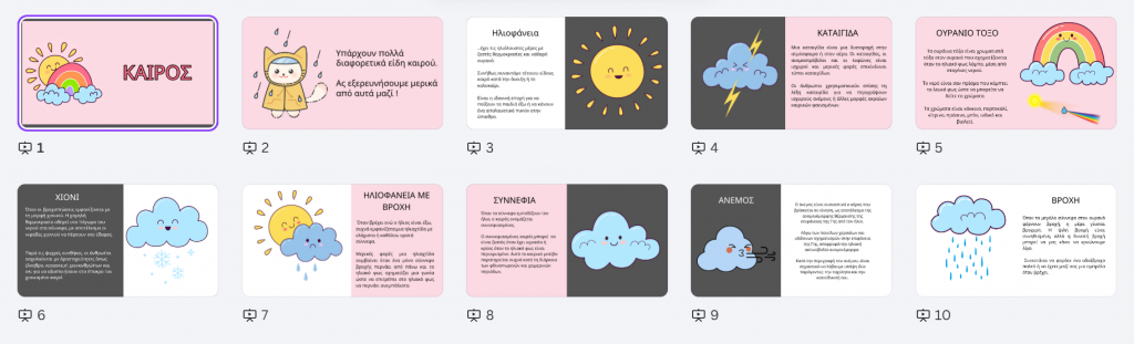 Και κάπου εκεί μιλήσαμε για τον καιρό! Αυτην τη λέξη που κρύβει μέσα ένα αι, σαν αυτό που μάθαμε! Ποιες είναι οι καιρικές συνθήκες; Είδαμε μια σύντομη παρουσίαση και συζητήσαμε για αυτήν.