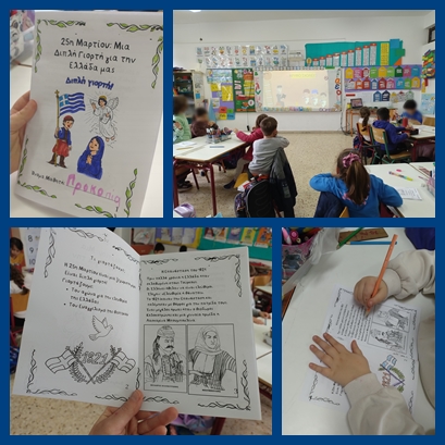 Οι μέρες για την παρέλαση  πλησιάζουν και φυσικά δεν παραλείψαμε να μιλήσουμε για την εθνική επέτειο της 25ης Μαρτίου. Ξεκινήσαμε ένα σχετικό βιβλιαράκι που μας δίνει πληροφορίες και αφορμές για συζητήσεις σχετικά με την Ελληνική Επανάσταση του 1821 και τον Ευαγγελισμό. Ζωγραφίσαμε και ακούσαμε και τα τραγούδια του Θουρίου και του Ζαλόγγου.