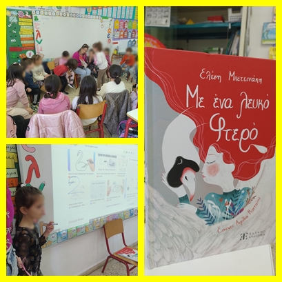 Αυτήν την εβδομάδα είχαμε διπλή επίσκεψη στην τάξη μας για ανάγνωση βιβλίου! Τη Δευτέρα η μαμά Αγάπη μας διάβασε το βιβλίο "Με ένα λευκό φτερό" της Ελένης Μπετεινάκη. Ένα τρυφερό βιβλίο με πρωταγωνίστρια ένα ανάπηρο κορίτσι κι έναν κύκνο. Επειδή είχαμε χρόνο, εκτός από τη συζήτησή μας,  προλάβαμε να εικονογραφήσουμε και ο,τι μας άρεσε από την ιστορία, κάνοντας και ένα μικρό μάθημα ζωγραφικής  πάνω στους κύκνους!