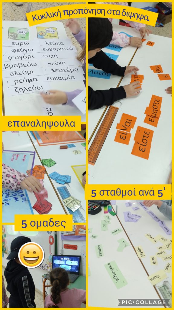 4. Καρτέλες με εικόνες που περιέχουν δίψηφα σύμφωνα  (έπρεπε να γράψουν μια από κάθε χρώμα).